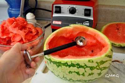 2. If you have a melon scoop, by all means, use that handy kitchen utensil. I do not. So, I used my coffee scoop!