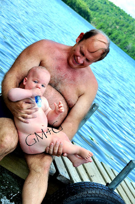 (Ummmm . . . daughter, your son is naked and sitting on me. He’s not going to pee on me is he?”)