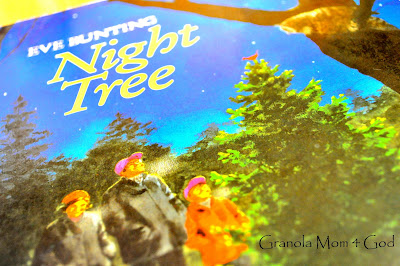 Night Tree by Eve Bunting arrived in our mailbox from www.Paperbackswap.com (click on the link to learn more about my favorite and practical recycling website that provides the majority of our homeschooling curriculum for sustainable books).