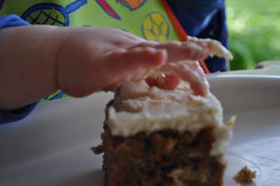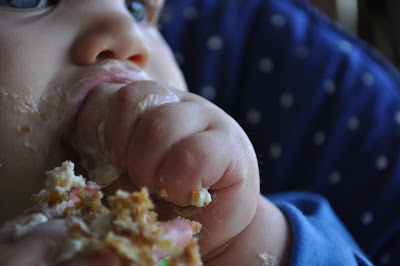 And so began Mr. Smiley’s journey into toddler hood. He enjoyed his first piece of cake, which was his first time having freshly ground wheat, smooth cream cheese, rapadura, and honey.