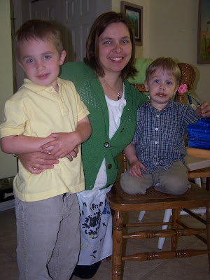 Afterthought: Here is a picture of the boys after returning from church. Mr. Easy made me an apron in Sunday School (bless his teacher) and Mr. Smackdown handed me my annual carnation.