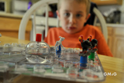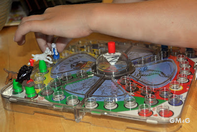 A game Mr. Smackdown and I have been playing recently is Tornado ($12.99) from Maverick Books, involving Hank the Cowdog. If you have played Trouble (thanks Sarah), then you can easily play this fun travel friendly game. However, we had received Tornado before Mr. Smackdown was given Trouble for his birthday, and we were a little bit confused by the directions. Three adults on separate occasions had to ask for help to understand the written directions. So, if you purchase Tornado, let the wind blow your directions away and pretend it is the game of Trouble. Tornado is so popular in our household that it traveled all the way up to Canada with us on our family vacation. The playing figurines of Hank and the buzzard particularly appeal to my little cowboy at heart.