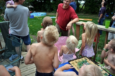OK . . . the party officially began with making sure we had enough water balloons for the annual water balloon fight. Uncle Mike and Papa were all over that!