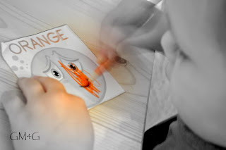 Continuing with our feelings lapbook, Mr. Me-Too colored the face orange and looked for orange objects around the house.
