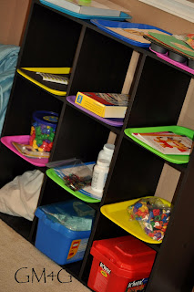 Remember the colorful foam pieces from last week? Hottie Hubby enlarged the pieces on the scanner and voila . . . we turned the foam pieces into a sorting game.