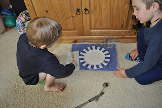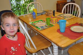 The boys learned to set the table. Their future wives will thank me. I taught them how to set the table. Next, we took turns making a mess of our mock table and then correctly placing the dinnerware in its designated spot.