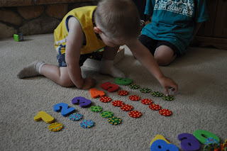 We had some leftover numbers, and used our Connectagons and corresponded the correct number of pieces below each foam number.