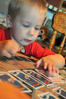 Another day after reading ABC Bunny we got out our animal cards from Homeschool Share that are used throughout the FIAR books. We searched for the animals on our cards that were mentioned in the story.