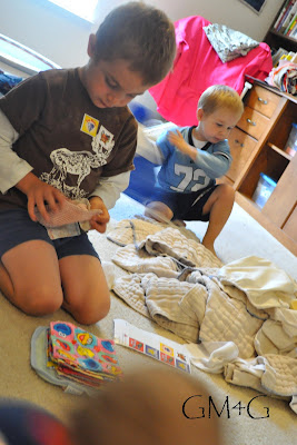 Then, they had to match the pairs of shoes because I mixed them all up.  (Rosey-Posey was over for the morning and helped us.)