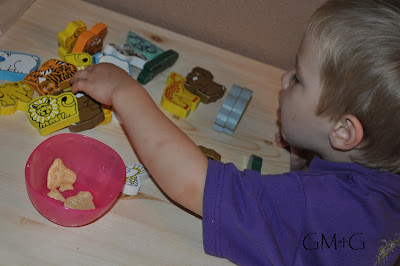 This week I had Mr. Me-Too sort the animals in Noah’s Ark. He had to work on finding pairs.
