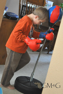 Since we have a lot of energy in our house . . . my mom helped facilitate a creative outlet for all this manliness. When things get frustrating . . . go to the punching bag! This also works great for some hand/eye coordination!