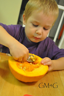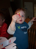 We read a story about a little boy who didn’t obey his parents and subsequently fell into a manure pile (the boys enjoyed saying “poop,” as did their Grandma). As a result the boy learns that children should obey their parents because God tells us to and it offers protection. Then they colored and glued on some textured items to the picture of the little boy. I don’t know if they learned a lesson, but it was fun to talk about who poops.