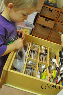 5. Oh my goodness – I am loving your school area. I totally "get" what you are saying about space to think being related to actual space in your home (at least I think that's what you were saying!). It looks so organized, spacious, and inviting! I love your tot tray ideas too – so many great things! M is our silverware-putter-awayer too (official title, you know). 🙂