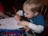 Big Brother, Mr. Smackdown, enjoys getting to use markers for Tot Time.