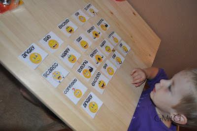 The Hottie Hubby and I are working on helping Mr. Me-Too express his feelings. Often he wants to cry or throw something. I understand that he is frustrated. So we are trying to be patient and creative, encouraging him to learn how to tell us what is wrong. Thankfully, Carisa at 1+1+1=1 posted a feelings lapbook that we have been using.