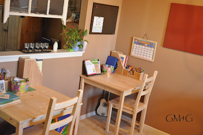This year we chose to work on our school room. Tot School and Kindergarten had been occurring in our dining room. However, it wasn’t very efficient and the close proximity of the boys to each other caused . . . tension. At the suggestion of some friends and a little bit of blog hopping, we decided that we needed to move to individualized work spaces.