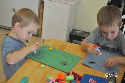 C week was introduced with the Letter C Caterpillar, from No Time for Flashcards! When they were done, we used pipe cleaners for antenna above the C eyes.